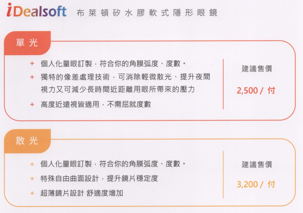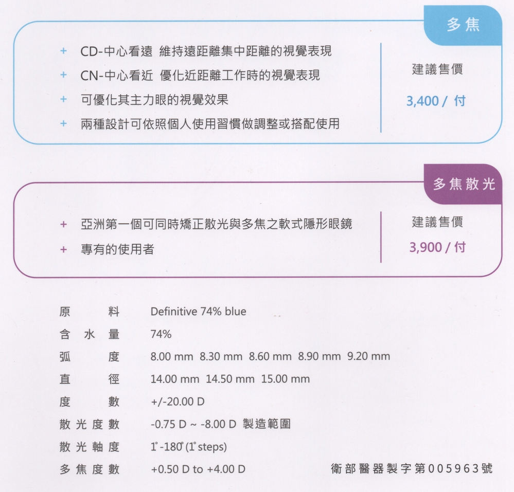 多焦系列-簡介/價目表