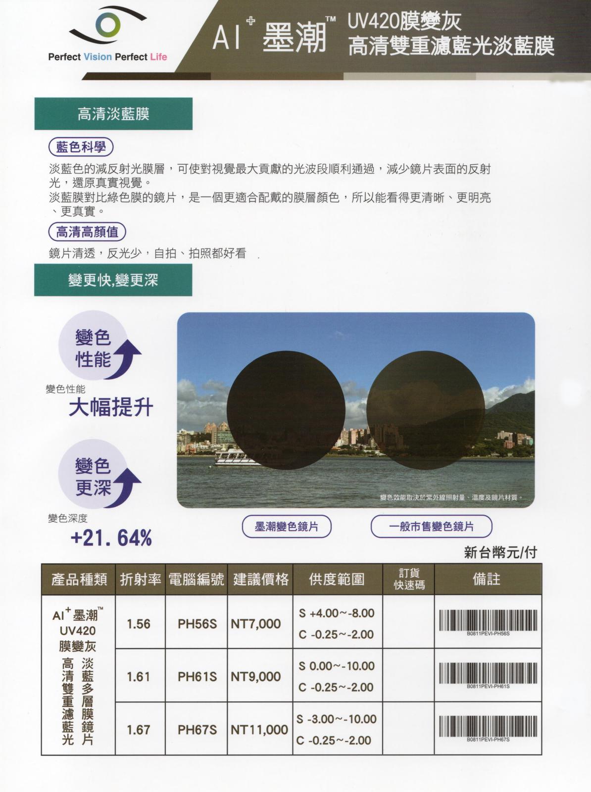 墨潮UV420濾藍光變色灰