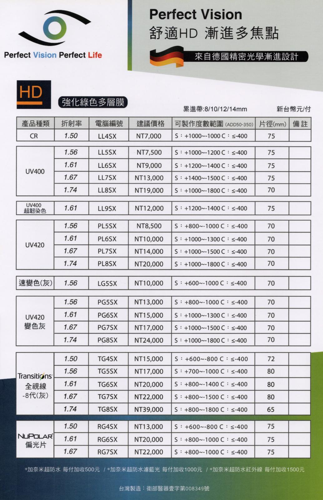 八目王潮鏡片價目表