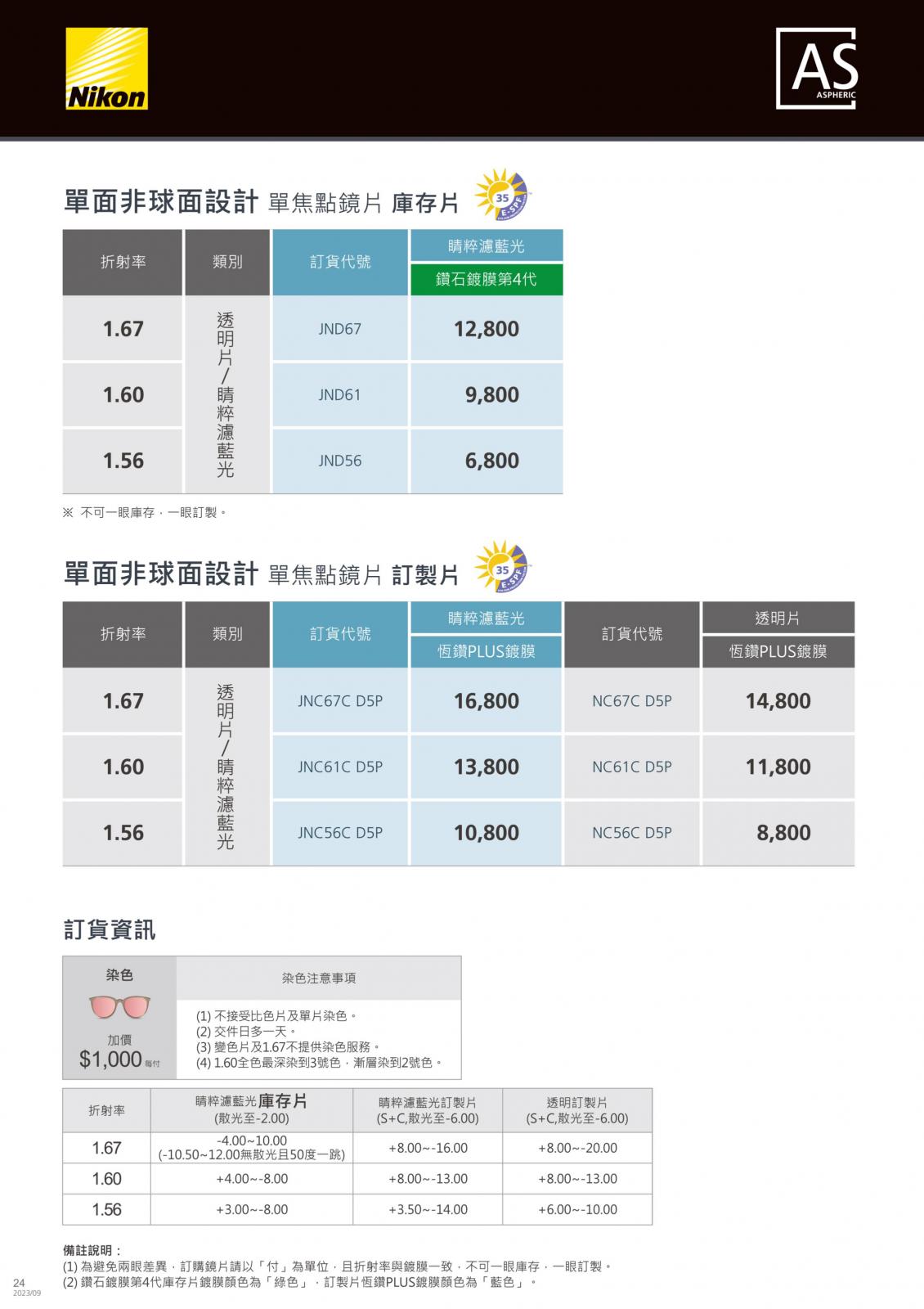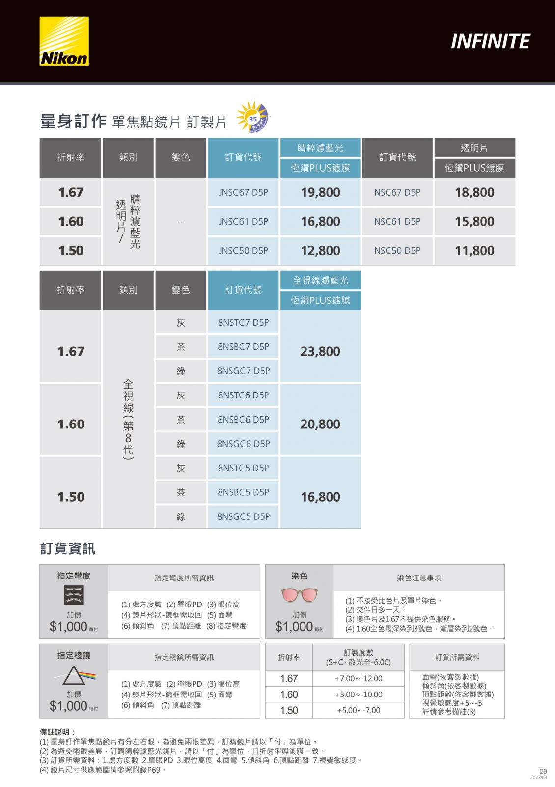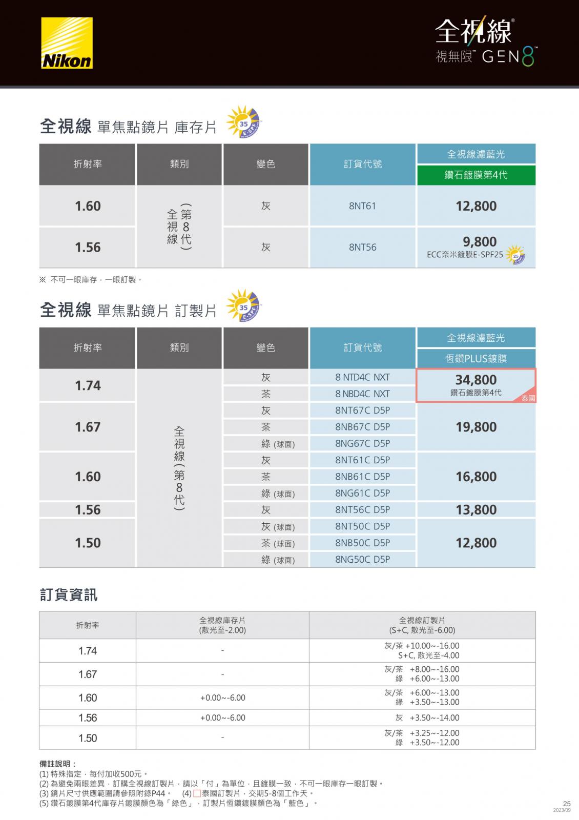 八目王潮鏡片價目表