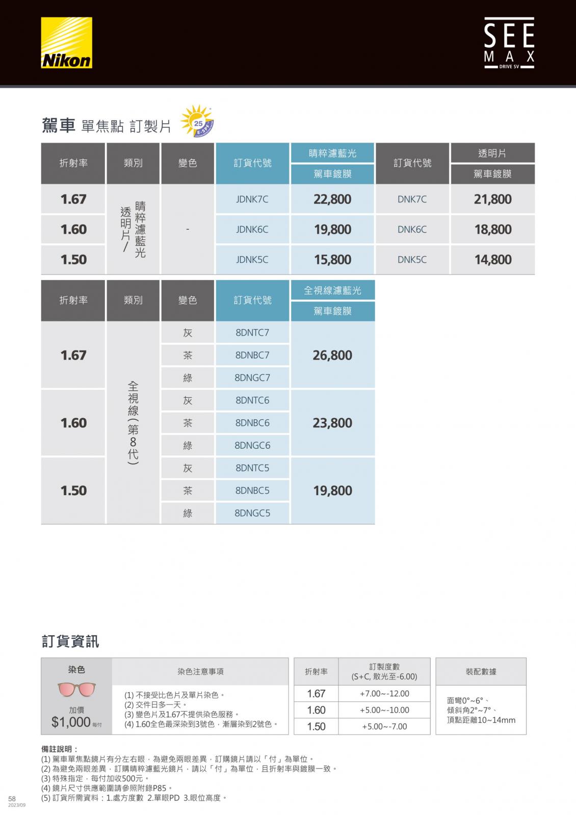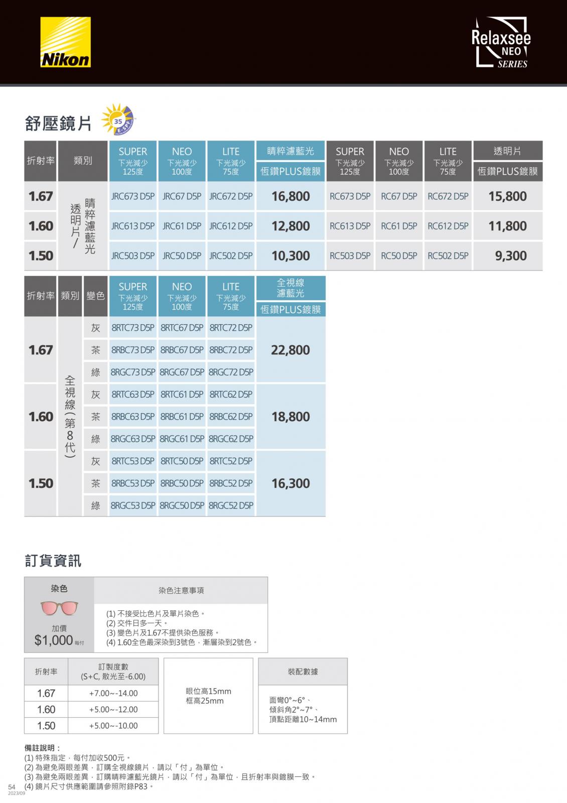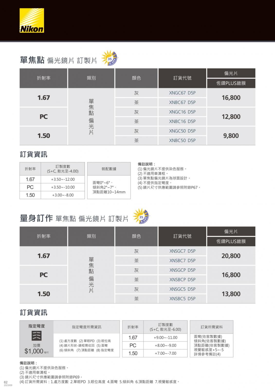 八目王潮鏡片價目表