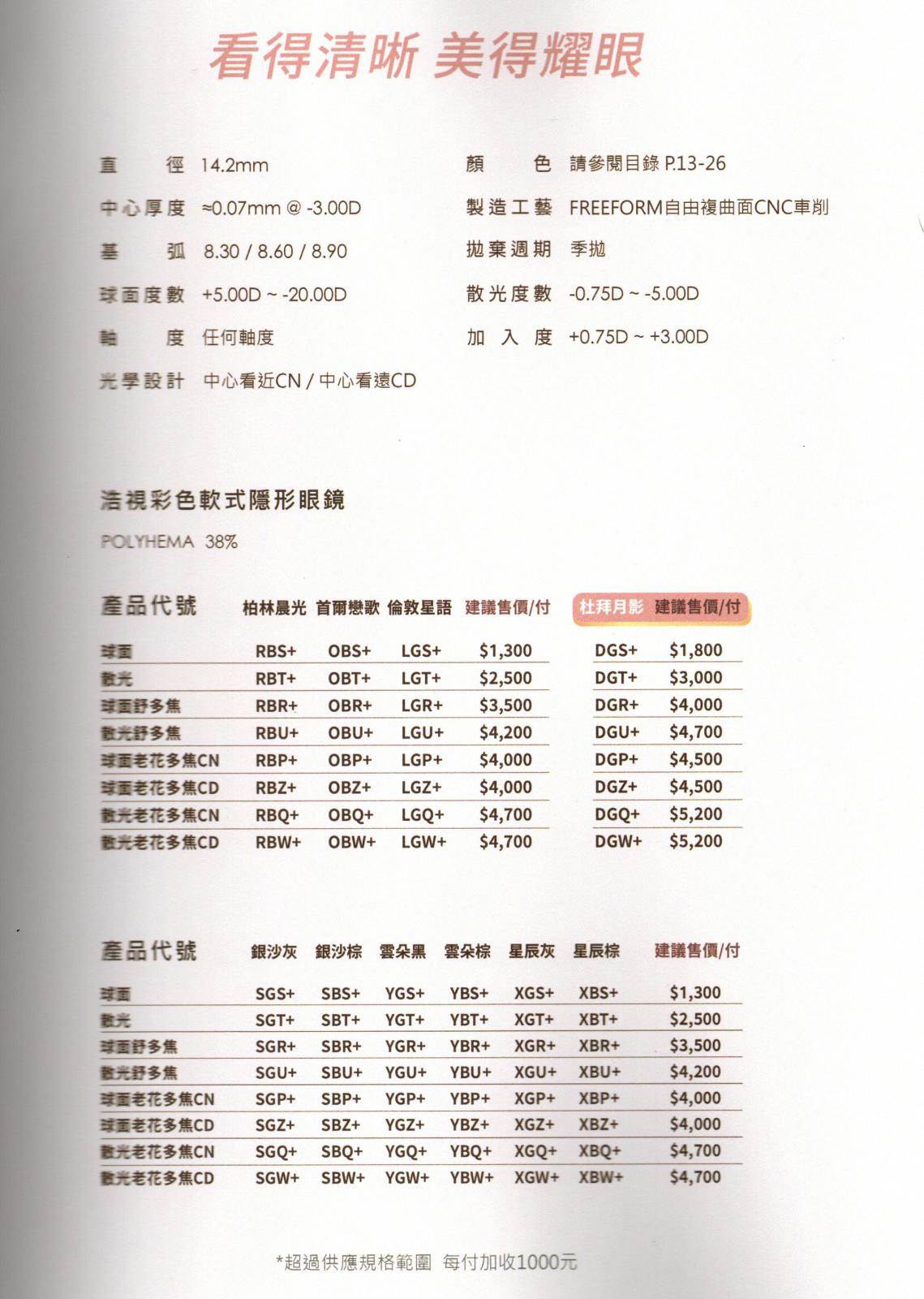 多焦系列-簡介/價目表