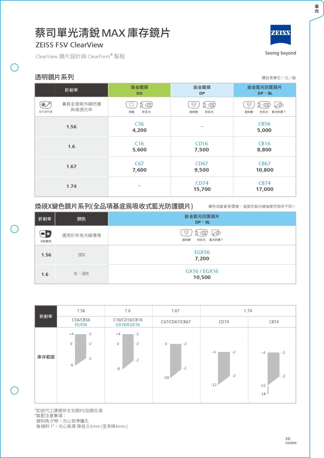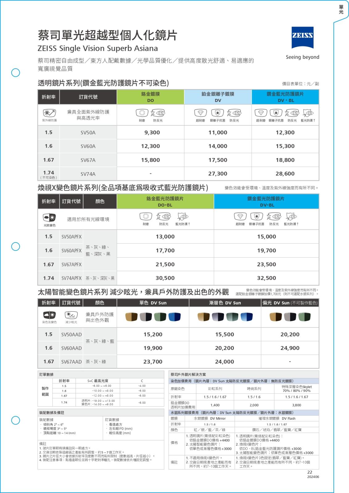 閃亮單焦系列/價目表