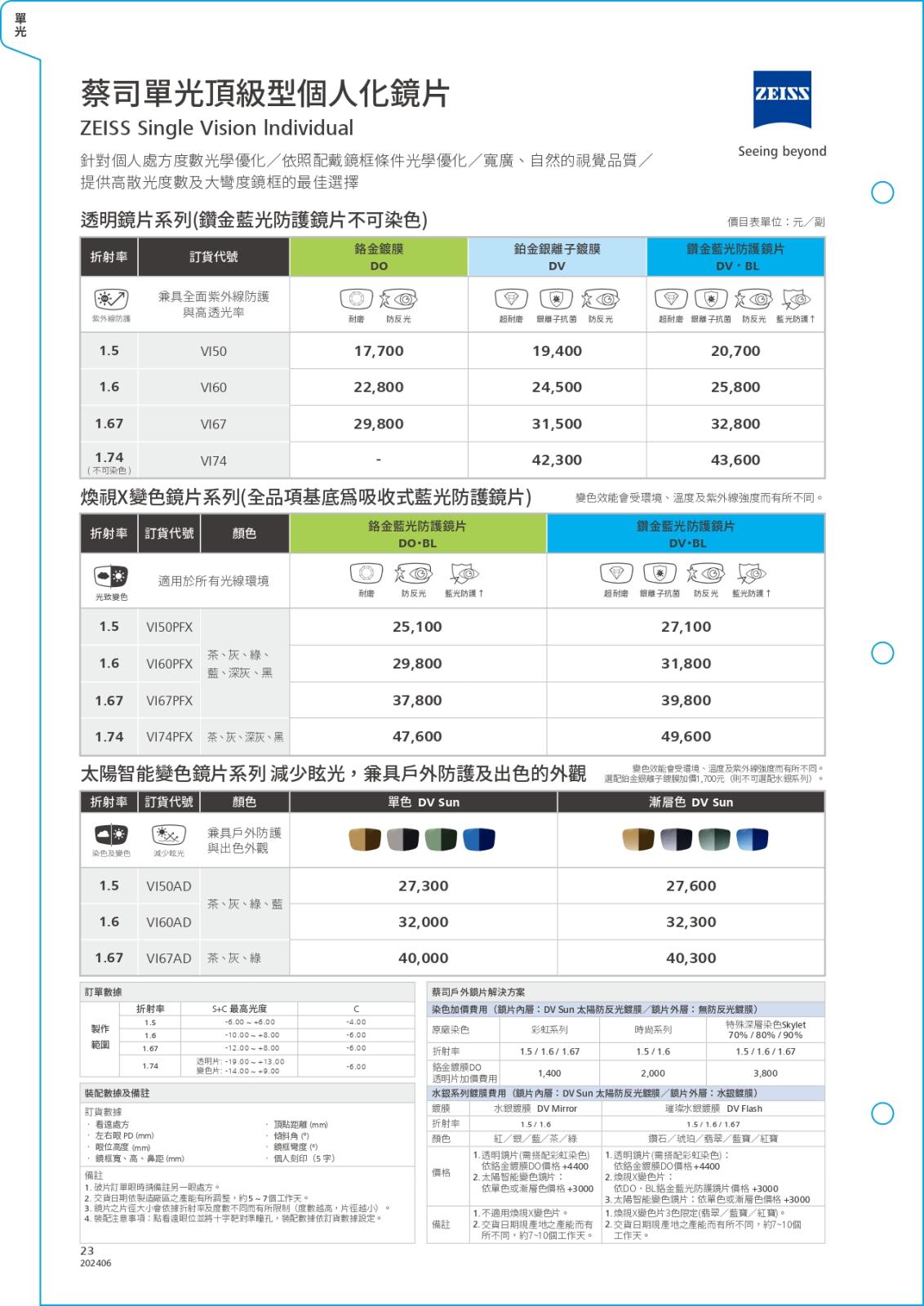 多焦系列-簡介/價目表