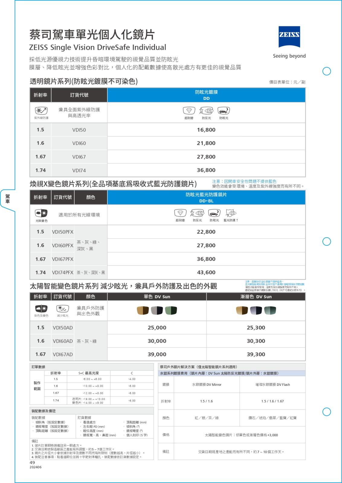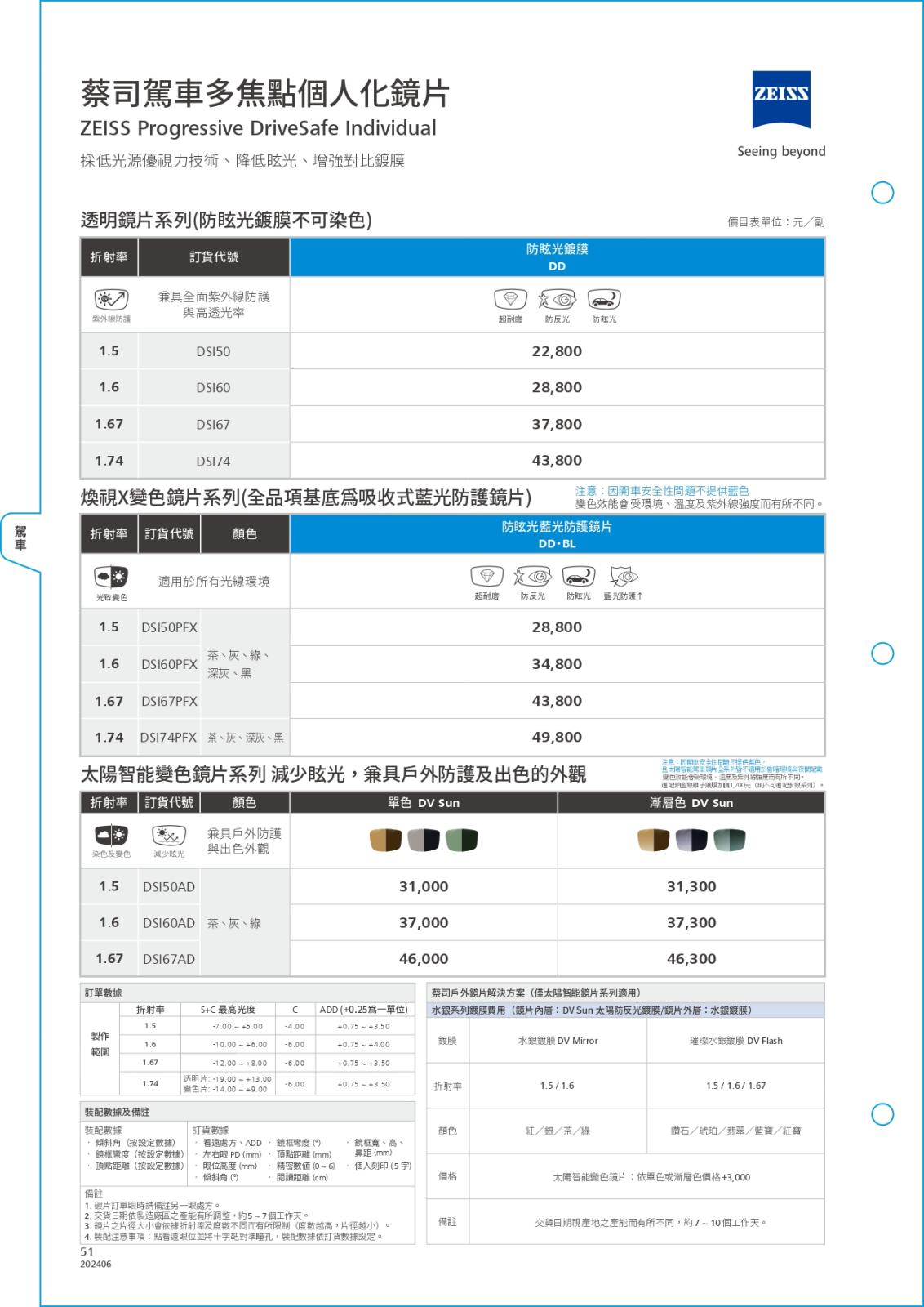 多焦系列-簡介/價目表