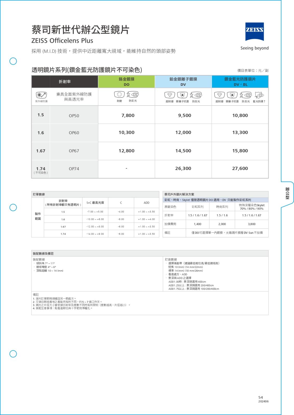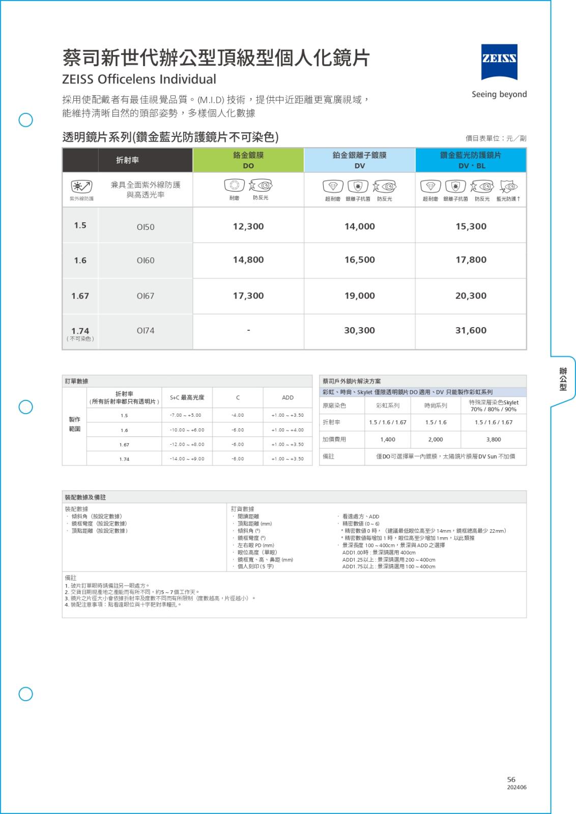 多焦系列-簡介/價目表