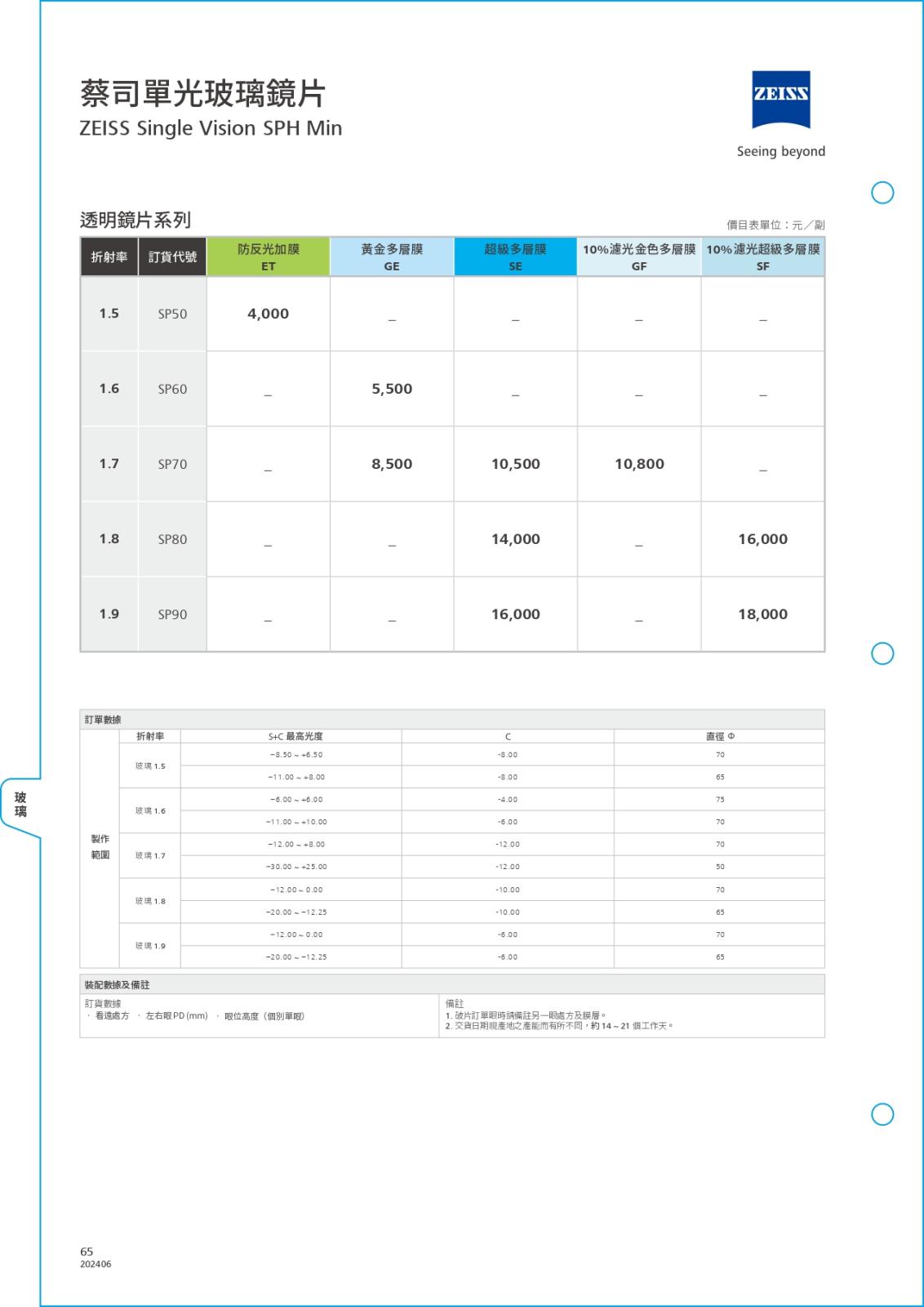 閃亮單焦系列/價目表